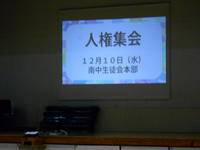 12月10日生徒会による人権集会を行いました。一人一人が取り組んだ「マイハート宣言」を各クラスの代表者が発表しました。また、生徒会としての活動報告や今後の取組について確認がありました。